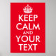Design your own "Keep Calm and Your Text" poster with a bright red or other background colour. I'd suggest that if you want to change the text size that you select all the layers within the text design and change the entire design at one time.