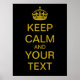 Create your own personal "Keep Calm and Carry On" poster! This version has antique brass / gold crown and text on a black background (customisable background colour!). Go ahead and fill your own text in the boxes provided, and feel free to customise as desired. Great for teachers - make a custom poster for you classroom! Or create your own personal slogan for the office or just your desk. Have fun and enjoy!