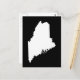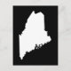 A simple blank modern minimalist design featuring the map shape of the state of Maine in white against solid black.