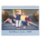 On the calendar pages, your photo will take up the full top page. On the cover, your horizontal image will be letterboxed with a light blue band across the top and bottom. A fine black stripe will border the top and bottom of your photograph. Your custom text will appear beneath your image in black text on the pale blue.