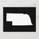 A simple blank modern minimalist design featuring the map shape of the state of Nebraska in white against solid black.