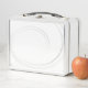 This is a standard metal lunchbox that appears to work just fine. We designed this box ourselves with an uploaded photo and custom text on the front and back. It looks absolutely beautiful except the front of the lunchbox is not centered like it shows in the photo. The print borders don't align with the inset flat part of the box where the preview photo online showed it perfectly centered in there. The back looks nice and centered though.