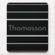 This modern monogram gives your mouse pad a unique and distinguished look. White horizontal lines compliment the minimalist black and grey colour scheme. This mouse pad will look chic and stylish on a home office desk or table top be it wood, glass or marble. Get it for yourself or give it as a custom made gift to your family and friends.