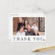 Minimalist modern simple typography custom photo thank you postcard template in simple black and white. Easy to personalise with your picture and details and adapt the text to your needs.