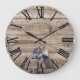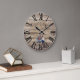 Turn your favorite memory into a timeless piece of art. This custom wall clock features a realistic weathered wood texture and classic black Roman numerals, adding a warm, rustic farmhouse charm to any room.