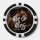 These custom poker chips feature your photo printed on each side, creating a fun and personal design that stands out. You have the option to use two different photos—one on each side—or keep it cohesive with the same image on both sides. A subtle black gradient behind the text ensures “Mr. & Mrs” in large white handwritten script stands out clearly, while the wedding date appears in a clean serif font for a classic and balanced touch.
