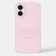 Create your own quote iPhone case. Features your favourite inspirational quote, song lyric, funny saying, bible verse or custom text in minimalist gold typewriter style typography on pink colour.