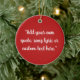 Create your own custom quote ornament featuring your favorite inspirational quote, Christmas song lyric or personalized text in modern script calligraphy typography on red color background.