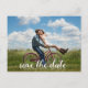 Share your wedding date in style with this unique script-style couple photo postcard. Replace the template photo with your own fun photo of the couple. Easily add your wedding announcement related information at the back of the card.
