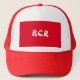 Create your own Stylish Red Trucker Hat, featuring bold BCR text on the forehead!