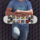Trendy ready-made square photo template skateboard, featuring a photo collage which is easy for you to replace with your own 12 pictures. A great birthday or christmas gift!