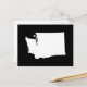 A simple blank modern minimalist design featuring the map shape of the state of Washington in white against solid black.