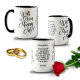 This white mug, adorned with a striking black handle and elegantly designed black script that spells out "Will you Marry Me?" on both its sides, is a brilliantly inventive way to propose. What makes it so clever is the thoughtful customisation in the centre area, where the bride-to-be's name, a heartfelt personal message, and the groom-to-be's name are added. This personal touch transforms the proposal into a touching and unforgettable moment, as the unsuspecting recipient discovers their name and the heartfelt message while enjoying a beverage. It's a blend of surprise, sentimentality, and creativity that turns an ordinary experience into an extraordinary and memorable proposal.