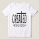 This bold and declarative apparel design features the powerful, faith-based statement, "CREATED WITH A PURPOSE." The message emphasizes the spiritual identity and inherent value of every individual, rooted in Christian doctrine. The text is rendered in high-contrast black typography against a clean white T-shirt background. The design uses an impactful, large, bold print for the word "CREATED," and a flowing, slightly smaller font for "WITH A PURPOSE." A striking design element is the prominent cross graphic which serves as the crossbar for the letter 'T' in "CREATED," visually linking creation directly to Christ's sacrifice. Small heart graphics are used to accent the lower phrase, symbolizing love. This versatile T-shirt is a strong, public declaration of self-worth, divine intent, and spiritual direction. It is ideal for casual wear, youth groups, women's ministry events, or as a thoughtful, empowering gift for anyone seeking to wear their faith and personal purpose proudly.