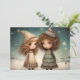 Christmas gift exchange, friends holiday card, festive gift notecard, giving gifts illustration, holiday friends card, Christmas cheer design, gift exchange scene, friendship holiday card, joyful Christmas exchange, festive gift-giving art
