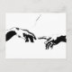 A black and white pop art style version of "The Creation of Adam" by Michelangelo. The original was painted on the ceiling of the Sistine Chapel and depicts God's creation of the first man, Adam, as told in Genesis.