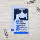 Cover features a blue faucet silhouette that is leaking your prestigious name in blue. To the right lies your business name "Home Plumbing Services" which you can change with the contact details in their respective blue faucet buttons. At the base of the card is the caption "The better plumbing choice" which you can change.