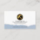 A grey brick wall with a cut-off area houses your prestigious name and job title. Just below in the blue plaster wall lies a gold hammer logo you can use, alongside the business name and its contact details.