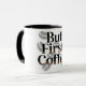 Start your day the right way with this iconic "But First, Coffee" quote mug. Featuring bold typography creatively overlaid with coffee bean illustrations. This is an essential item and a perfect gift for every true coffee lover.