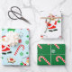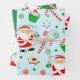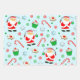 Unique fishing holiday gift wrap featuring funny Santa fisherman and Christmas candy, cupcakes and cookies.