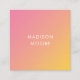 This modern square business card design features a colourful pink yellow gradient ombré effect with simple typography on the front and back. Customise this business card template with your own information.
