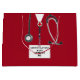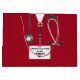 Medical school graduation, birthday or congratulations doctor gift bag featuring hospital scrubs and stethoscope. Edit text to add doctor, physician assistant or nurse's name and medial credentials.