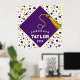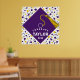Creative graduation party poster, featuring purple cap with a gold tassel on confetti background. To personalize, edit text add grad's name and senior class year.