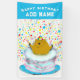 Groundhog Day happy birthday banner featuring groundhog jumping out of a cake. To personalise edit text to add his or her name.
