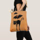 Unique Halloween tote or candy sack bag featuring a funny black cat and bat acrobat with an umbrella.