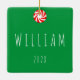 Unique lacrosse Christmas ornament featuring peppermint lax ball and the words: Merry Lax-mas. To customise edit text to add lacrosse player, coach or team sports fan's name and the year.