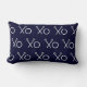 Unique lacrosse pillow featuring lax stick xoxo design pattern on field of navy blue.