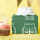 Unique law school graduation or attorney congrats gift wrap design on a green background. To personalise edit text to add his or her name.