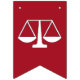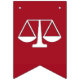Unique law school graduation celebration decoration for lawyer grad featuring red scales of justice and stripes.