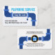 Cover features a water pipe design that is leaking at its joint. At the centre of this pipe is a slogan caption "Stop The Leak" which you can change. Over at the top is the business name "PLUMBING SERVICE" in blue with the contact details near the base.