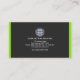 Design features two bright green squares with an embedded arrow in it at the upper and lower left corners of the card. It encapsulates your faux gold logo and its business name. Towards the right wall, there is another bright rectangle. It houses your name and job title at the top with all your business details at the bottom.