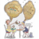 Rustic wooden panelling background with cute canteen girl drawings with thought bubbles thinking: - creativity is magical, not magic - Creativity is a drug I cannot do without - I love cooking with wine - sometimes I put some in the food. I love strong coffee.