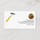 Overleaf, in a white cover, there is an abstract design of a hammer at the left side. In the opposite directs lies your gold logo, followed by the business name, its contact details and a slogan option to advertise your services.