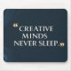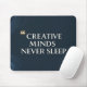 Fuel your creativity with the "Creative Minds Never Sleep" mouse pad. Designed for artists, writers, musicians, and visionaries, this inspiring desk essential celebrates the boundless imagination and unstoppable passion that keep creative minds buzzing. Whether you're brainstorming late into the night, sketching ideas at sunrise, or pushing the limits of innovation, this mouse pad is a statement of relentless creativity. Elevate your workspace, stay inspired, and let your artistic vision flow!