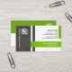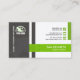 A simple design centred on rectangular columns. In the bright green column near the card's base, sits your name and job title ; A translucent arrow points to your name at the left. Directly above, there is a vertical green rectangle which holds together social icon buttons for your card details. At the left wall, there's a large grey column that has the logo and an inverted business name by the side ; an embedded grey arrow sits at the middle. Overleaf, the card has two portions. The upper green piece has the logo and business name. The white column directly underneath has the business details along with its slogan tagline option. If you decide to upload a photo instead of a logo, the dimensions are 1,000 x 1,000 pix. This design has lots of option which allows you to customise the card. This card would be great especially for those involved in the channels of distribution, logistics, warehousing, marketing etc.