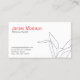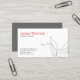 Showcase contemporary style with our business card template, where a bold, scaled-up black outlined origami crane gracefully extends off the right edge, creating a dynamic visual effect. Your name stands out in striking red, with your title and contact details in classic black, juxtaposed to the left of the crane for an eye-catching contrast. On the back, a solitary white origami crane rests on a grey backdrop, accompanied by your URL. This design is perfect for creative professionals, marketing experts, or any innovator seeking a card that captures attention and leaves a lasting impression. Design © 1201AM Design Studio | www.1201am.com