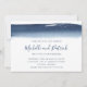 Creative Navy Blue Watercolor Brushstroke Wedding Invitation