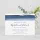 Modern and creative horizontal wedding invitation featuring a simple design with a navy blue watercolor brushstroke across the top, over a white background. Below are your names in a handwritten font and your wedding details in a sans serif font. The backside is a solid navy blue. These unique invitations are great for an artistic couple.