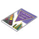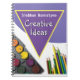 Creative ideas and creative thoughts notebook which has a border of paints and pencils as a background. Add your name or the name of the intended recipient. Purple and yellow colour theme. Artist's notebook with the name of the owner.