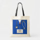 Unique nurse gift bag and tote featuring royal blue hospital scrubs, a stethoscope, and the words: Nurse Purse. Edit text to add the name of your favourite nurse.