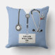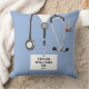 Unique nurse gift decor featuring grey hospital scrubs, stethoscope and funny Swiss Army knife on blue hospital scrubs. Edit text to add name and credentials.