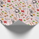 Unique medical-themed gift wrap featuring healthcare supplies and flowers pattern on pink background.