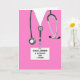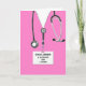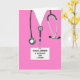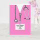 Personalised nursing school graduation cards featuring pink hospital scrubs and unique quote. Edit text to add name of nurse.