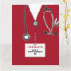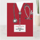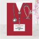 Unique nursing school graduation card featuring red hospital scrubs, a stethoscope, and funny Swiss Army knife. To personalise edit text to add nurse's name.
