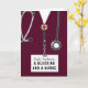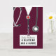 Unique nursing school graduation card for nurse grad featuring maroon hospital scrubs. To personalise dit text to add her or his name.
