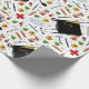 Unique nurse grad gift wrap featuring flowers, medical supplies and nursing school graduation caps.